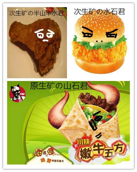 有一人(山石)长着一款嫩牛五方的脸。这脸上掉下两颗嫩牛五方形状的麻子,一颗麻子掉进一条河里一只滚来滚去磨成了一个汉堡包(水石)。另一颗滚了一半成了炸鸡腿(半山半水石)!此处应该有掌声!!!!哇咔咔,足见我美食家本质啊!!merci merci 。